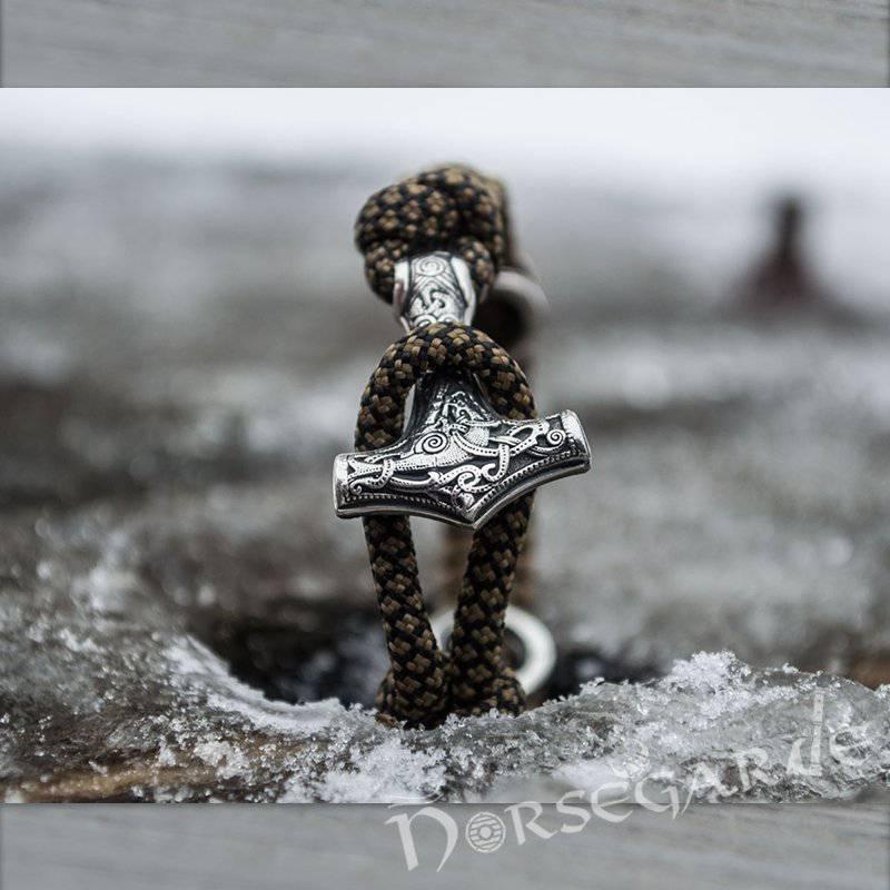 Handcrafted Bark Paracord Bracelet with Mjölnir and Runes - Sterling Silver